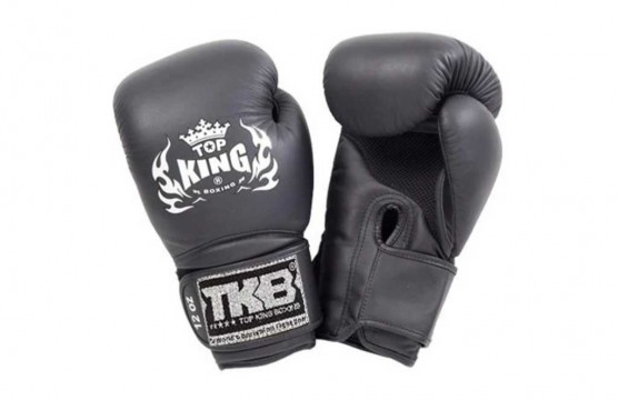Черные трехцветные перчатки Top King для тайского бокса - официальная гарантия производителя: 12 мес.